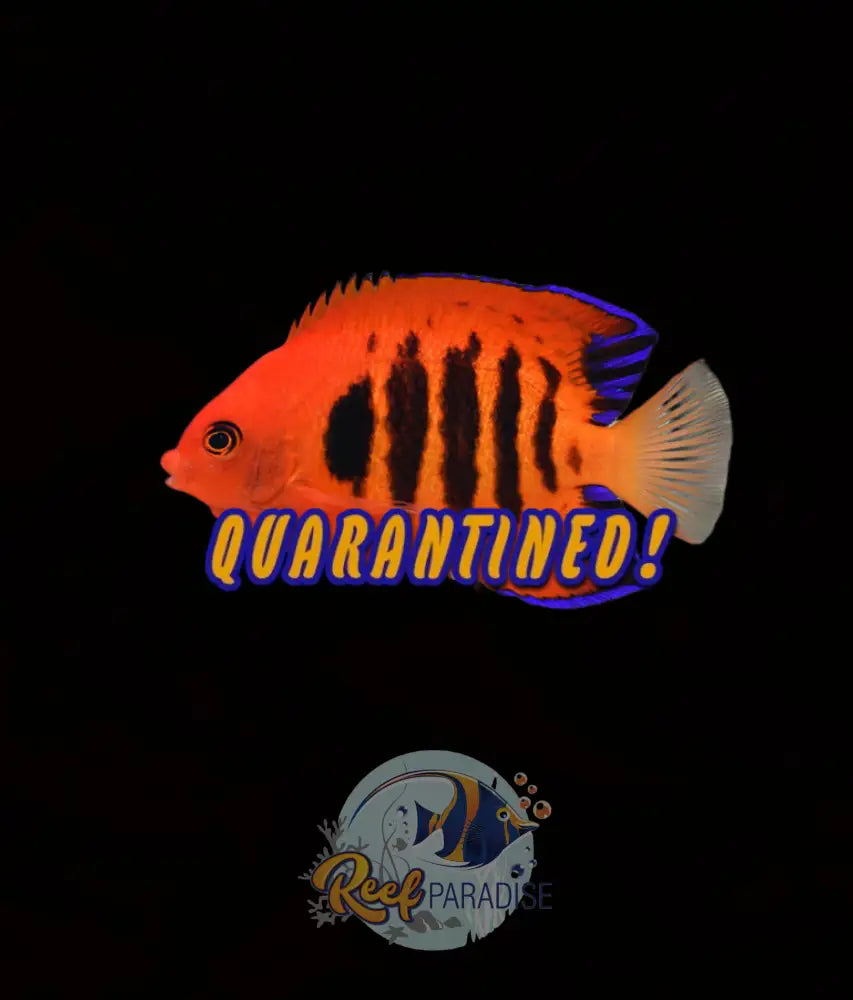 The Flame Angelfish is a flashy addition to many aquariums. One of the most popular of the dwarf angelfish, the Flame Angelfish is a bold red/orange color with vertical black stripes highlighting the body and horizontal black stripes along the caudal portions of the blue-tipped dorsal and anal fins.