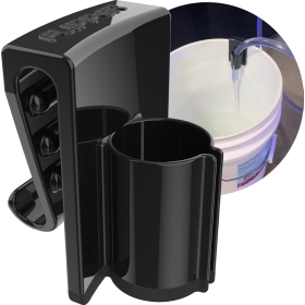 The Flipper Bucket Buddy is a specially designed hose retention clip that clips onto buckets, keeping the hose where it belongs.